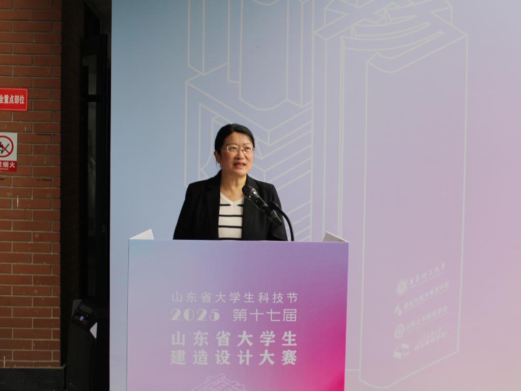 建筑与城乡规划学院党委书记吕楠对本次大赛给予悉心指导、为赛事筹备付出辛勤努力的全体人员表示感谢。并从学院建筑学专业发展、教育教学成果和人才培养做了简要介绍。她指出,本次大赛是全省建筑类专业学子展示专业素养、交流建造技艺的重要平台,也是推动建筑教育从“图纸”走向“实体”、从“课堂”走向“现场”的关键环节。希望同学们在真实建造中融合多学科智慧,在有限条件中创造无限可能,真正实现“以赛促学、以赛促教、以赛促建”。